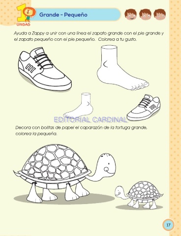 Ayuda a Zappy a unir con una línea el zapato grande con el pie grande y