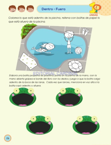 Colorea lo que está adentro de la piscina, rellena con bolitas de papel lo