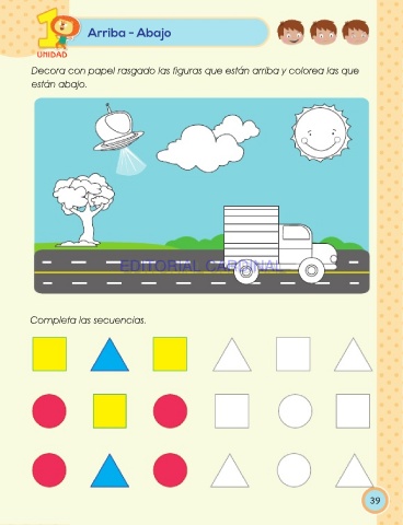 Arriba - Abajo UNIDAD Decora con papel rasgado las figuras que están arriba y colorea las que están abajo. EDITORIAL CARDINAL EDITORIAL CARDINAL Completa las secuencias. 39