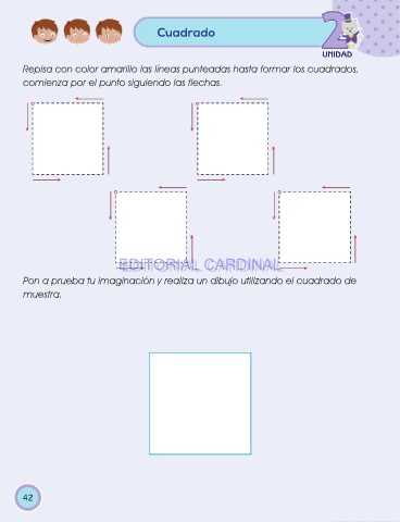 Repisa con color amarillo las líneas punteadas hasta formar los cuadrados,