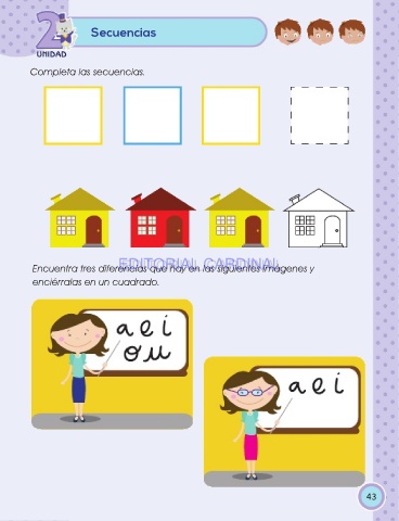 Secuencias UNIDAD Completa las secuencias. EDITORIAL CARDINAL EDITORIAL CARDINAL Encuentra tres diferencias que hay en las siguientes imágenes y enciérralas en un cuadrado. 43