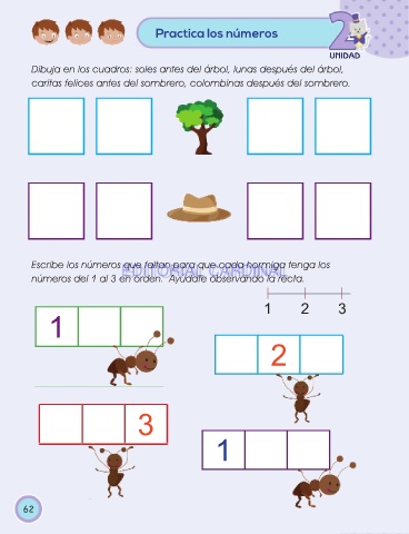números del 1 al 3 en orden. Ayúdate observando la recta.