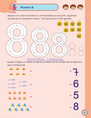 Repisa con color el número 8, comenzando por el punto, siguiendo