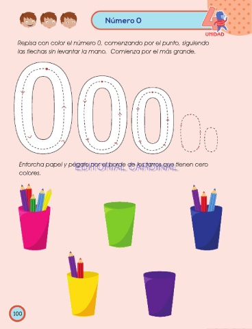 Repisa con color el número 0, comenzando por el punto, siguiendo