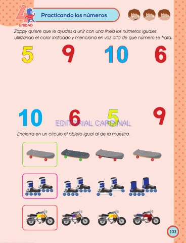Zappy quiere que le ayudes a unir con una línea los números iguales