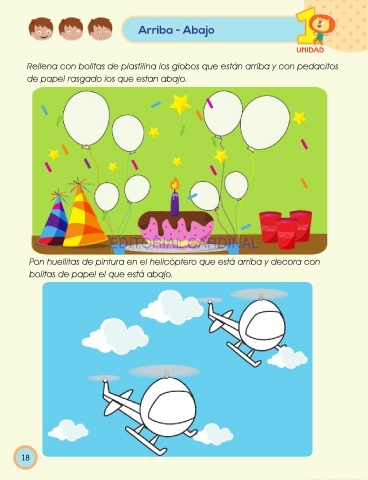 Rellena con bolitas de plastilina los globos que están arriba y con pedacitos