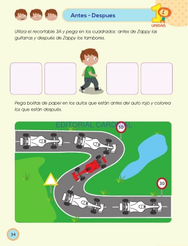 Utiliza el recortable 3A y pega en los cuadrados: antes de Zappy las