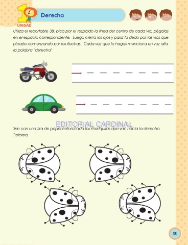 Une con una tira de papel entorchado las mariquitas que van hacia la derecha.