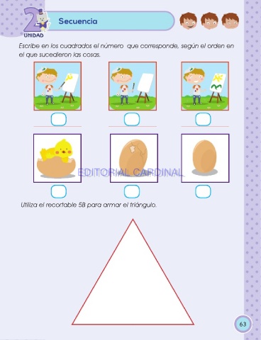Secuencia UNIDAD Escribe en los cuadrados el número que corresponde, según el orden en el que sucedieron las cosas. EDITORIAL CARDINAL EDITORIAL CARDINAL Utiliza el recortable 5B para armar el triángulo. 63